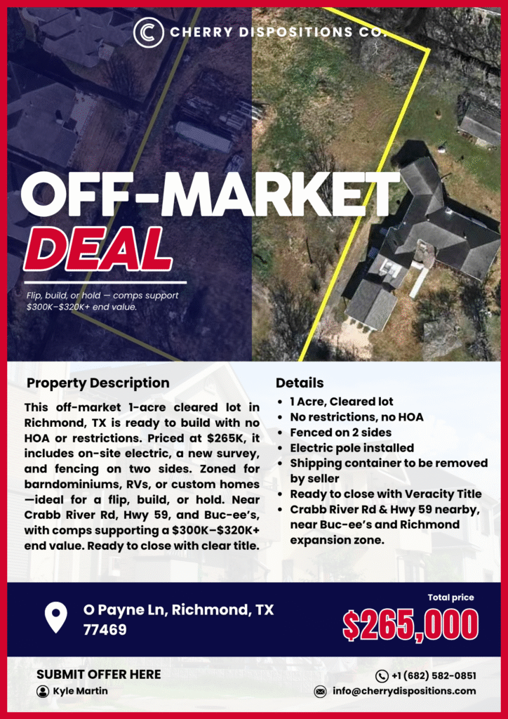 #richmondtx #texaslanddeal #offmarketland #landflipping #acreagedeals #houstoninvestor #texasinvestors #barndominiumready